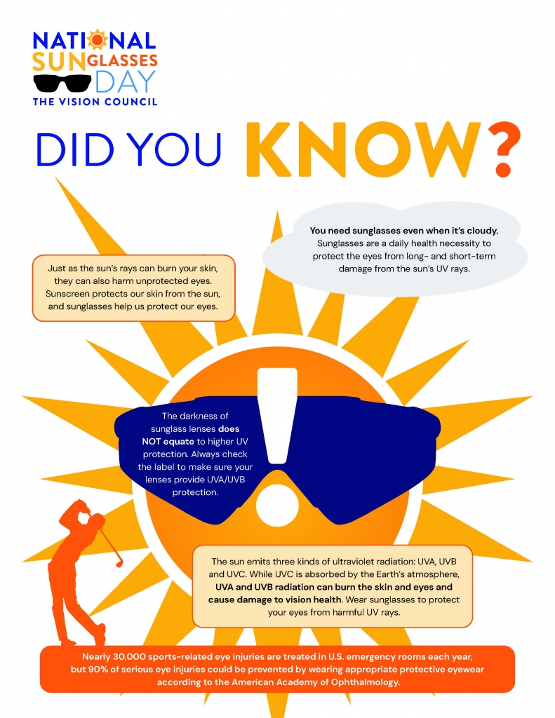 A good pair of sunglasses are the perfect accessory to the ultimate outfit, especially during the summer months. But on National Sunglasses Day on June 27, The Vision Council Foundation aims to raise awareness that sunglasses serve a greater purpose than matching that summer dress or t-shirt.